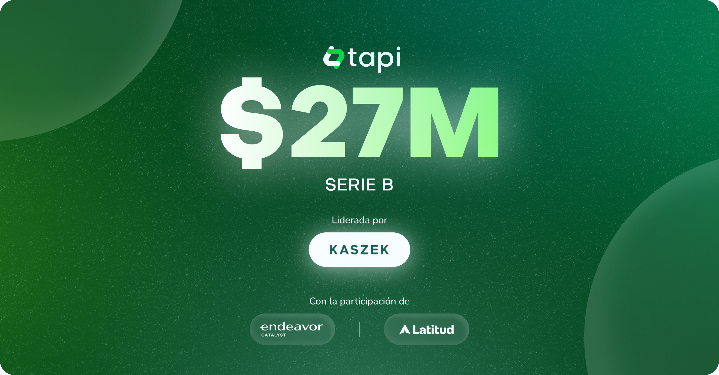 tapi, la red de pagos y cobros líder en México, anuncia una ronda de inversión Serie B por 27 millones de dólares, encabezada por Kaszek y respaldada por Endeavor Catalyst y Latitud. Con esta suma, la empresa alcanza más de 60 millones de dólares recaudados desde su comienzo en 2022.
